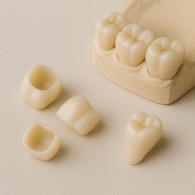 A crown is a custom cap that covers and protects a weakened or damaged tooth. Crowns restore strength, function, and appearance, helping preserve your natural tooth while giving you a confident smile.
